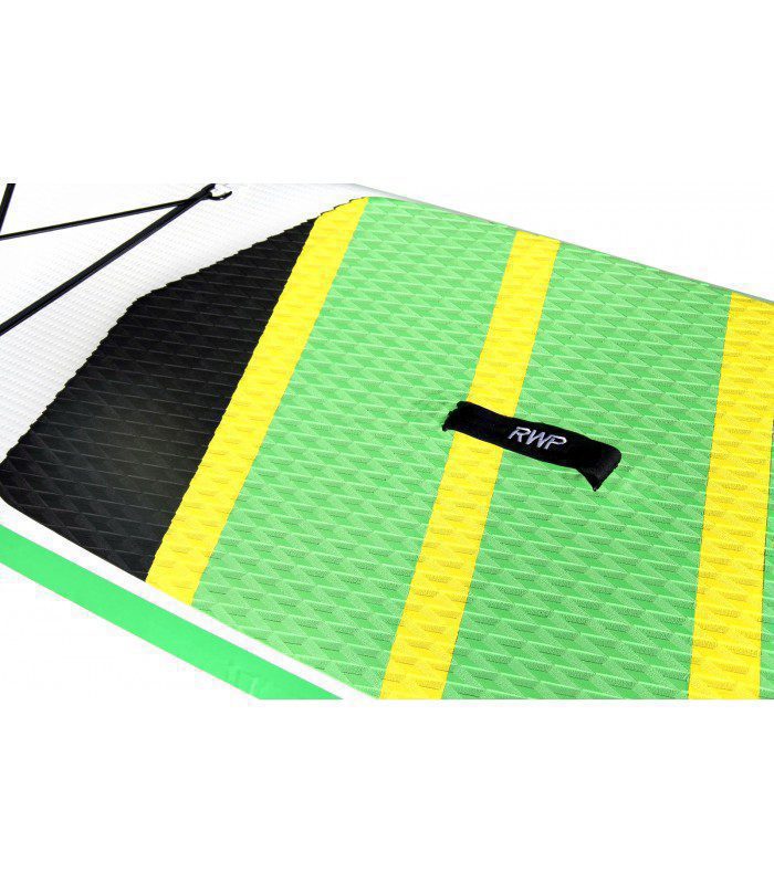 O uso desses novos materiais tem sido decisivo para obter a melhor relação peso / rigidez. É uma construção de alta qualidade cuja rigidez e leveza são imediatamente visíveis na água, mas também para transportar a prancha para a costa. Uma construção que pode ser encontrada em outras marcas, mas para preços que não têm nada a ver com a nossa e podem, por vezes, excedê-los mais que o dobro.Ridigez As duas camadas de PVC e a construção garantem uma prancha rígida e a perfeita restauração do shape da prancha. Eles podem ser inflados para mais de 20 psi. Fiabilidad Cuidados especiais no momento da vedação de materiais e rigoroso controle de qualidade garantem a confiabilidade de nossas pranchas e sua durabilidade ao longo do tempo. Quilhas Quilha central removível com sistema internacional US Box e duas aletas coladas para aumentar o controle e a estabilidade da prancha (exceto os modelos de corrida: apenas uma aleta central - Big Dady 3 aletas - Starter Range uma única aleta central com sistema de escorregamento ). Pad Deck pad 2/3. Nova densidade de espuma mais confortável e novo anti-derrapante para uma melhor aderência. (Full Deck pad no Big Daddy) Mochila Mochila com rodas para guardar a prancha com seus acessórios. Pode ser usado nas costas ou pendurado no ombro. O novo sistema de abertura do zíper permite que você entre na prancha e nos acessórios com facilidade. (Exceto Starter : mochila de tubo) Inflador Destaque o novo insuflador HP com manómetro incorporado, duplo sistema de enchimento que permite inflar a prancha com velocidade dupla e aumentar a pressão do ar. Acessorios Suporte elástico na ponta para segurar, por exemplo, uma bolsa, uma garrafa de água, máscaras de mergulho.