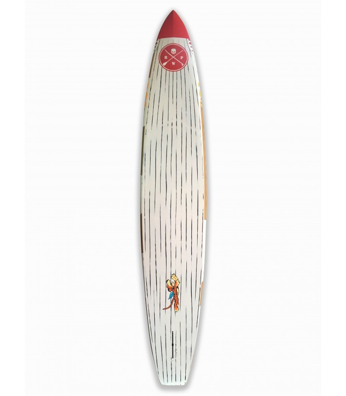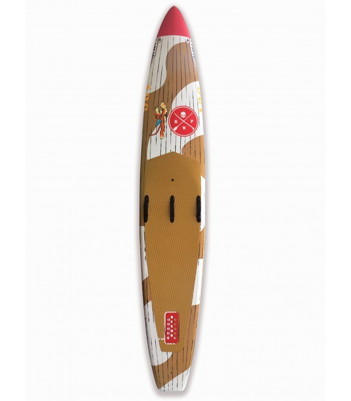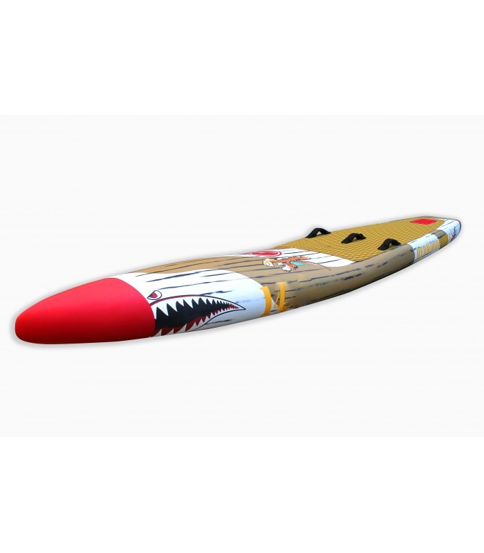 Esta Race 14" é a nossa nova arma para competições e longas distâncias. A construção 100% carbono /sandwich PVC, atribui-lhe um peso ultra leve. O shape foi testado pela nossa equipa, tanto em flat como em mar aberto, com o objetivo de alcançar a maior velocidade em ambas as condições.